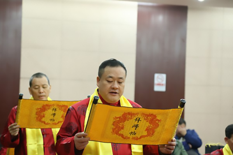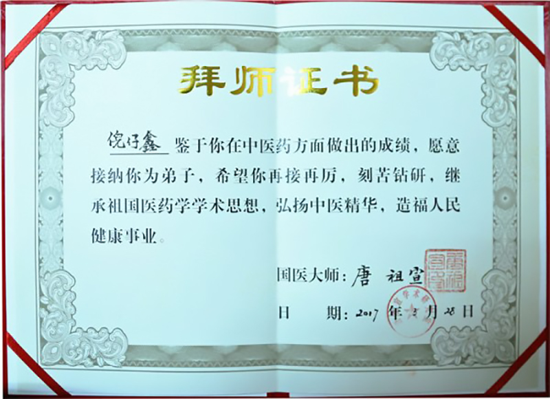 2017年3月28日,在中國(guó)中醫(yī)藥界從事多年的北京惠蜂高科董事長(zhǎng)倪仔鑫先生以其誠(chéng)實(shí)、勤奮、善良、堅(jiān)韌、擔(dān)當(dāng)?shù)淖吭饺似泛陀掠诔袚?dān)社會(huì)責(zé)任的博大胸懷,帶領(lǐng)集團(tuán)公司全體同仁研發(fā)出了品質(zhì)卓越的綠色健康蜂產(chǎn)品,贏得了國(guó)醫(yī)大師唐祖宣的認(rèn)可,正式被國(guó)醫(yī)大師唐祖宣教授收為中醫(yī)藥學(xué)術(shù)傳承弟子。“一日為師,終身為父。師者,傳道、授業(yè)、解惑也”,中醫(yī)界更講究的是師道傳承,德醫(yī)相授。在拜師儀式上,弟子們分別向國(guó)醫(yī)大師唐祖宣行鞠躬禮、獻(xiàn)上拜師帖、奉上一杯拜師茶、師徒互贈(zèng)禮物。