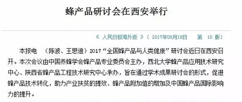 中國農(nóng)科院蜜蜂所、陜西省林業(yè)廳、西北大學、浙江大學及全國多家知名蜂產(chǎn)品企業(yè)參加會議,多名專家學者闡述了最新的蜂產(chǎn)品科研技術成果報告。陜西省林業(yè)廳廳長李三原表示,這些科研技術成果意義重大,部分技術應用到精準扶貧工作中后,預計能使養(yǎng)蜂脫貧的貧困戶收入翻番。