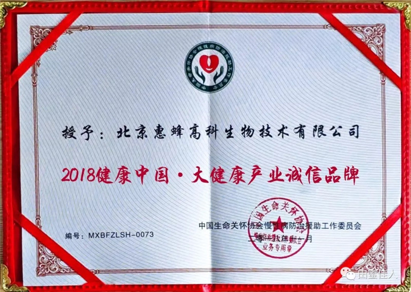 北京惠蜂董事長倪仔鑫上臺領獎 會議期間,北京惠蜂被中國生命關懷慢性病防治援助工作委員會授予“2018健康中國·大健康產(chǎn)業(yè)誠信品牌”