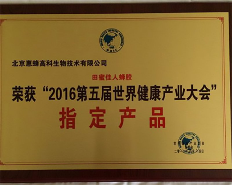 祝賀北京惠蜂高科生物技術(shù)有限公司——蜂膠產(chǎn)品拿到2016世界健康產(chǎn)業(yè)大會(huì)指定產(chǎn)品